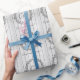 Wrap Geschenke für die Braut und Bräutigam mit einer Rolle der White Rustic Monogram Wedding Wrapping Paper. Das Papier-Design ist rustikal mit einem Holzhintergrund und einem schlichten eleganten Kranz ausgestattet. Zusätzliche Hochzeitswaren und Geschenke sind mit diesem Design ebenfalls erhältlich.
