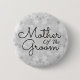 Hochzeitsmutter der Gräuel, benutzerdefinierte Pinback-Taste. Weiß silberne, einfache Blumenmuster personalisieren Ihre Typografie. Elegant, elegant, modern, trendig, stilvoll und wunderschön metallisch. Klicken Sie zum Ändern der Typografie auf Design bearbeiten. Bildrecht Marg Seregelyi Fotografie.