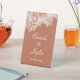 Weißes Spitzen auf der Terracotta Karte und Gesche Sockelschild