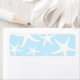 Ein Muster aus Seestern, weiß auf hellblauem Hintergrund.