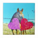 Weißes und braunes Pferd Valentine Hearts Fliese