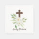 Diese einfachen und eleganten Papierservietten sind die perfekte Ergänzung, um die erste heilige Gemeinschaft, Taufe oder Taufe Ihres Kindes zu feiern. Die Einrichtung besteht aus einem braunen Kreuz mit weißen Blume und grünem Blattwerk. Alle braunen Typografien sind veränderbar. Entspricht unseren anderen Produkten für Blumenkreuze in Weiß und Grün.