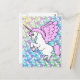 Niedliches Weißes Einhorn mit rosa Haar und Flügeln mit einem Muster von Einhorn Hintergrund in Gradientenblau. Vollständig anpassbar. Das Big Unicorn kann bewegt und vergrößert werden.