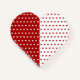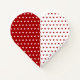 Herzförmiges Notizbuch mit vielen kleinen Herzen in polka dot muster. links Seite: rot mit weißen Herzen rechts: weiß mit roten Herzen