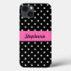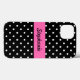 Schwarzweiss-Tupfenmuster. Weiße Tupfen auf Schwarzem und in der Mitte dort ist ein Pinkband, in dem Sie Ihren Namen addieren können.