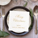 Personalisieren und fügen Sie ein Jahr und Text. Echter Goldfolientext: Frohe Weihnachten. Weiße Serviette.