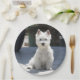 Weißes Westhochland Terrier, das auf Bürgersteig Pappteller