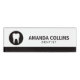 Personalisierter, beruflicher Zahnarztassistent oder Zahnarztpraxismagnetetikett mit einem weißen Zahn auf einem schwarzen Kreis und einem schwarzen Rand auf der Unterseite. Ändern Sie den schwarzen Text (Schriftart, Farbe, Name, Nachname, Berufsbezeichnung, Klinikname usw.) oder das Logo. Einfach zu anpassende Vorlage ideal für Zahnarzt, Zahnarzt, Mundhygiene oder andere Mitarbeiter. Entspricht der gleichen Visitenkarte.