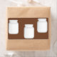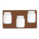 Weiße Gläser auf braunem Hintergrund.
