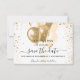 Ein schick weißer Hintergrund mit vergoldetem Glitzer und Imitaten. Personalisieren und fügen Sie Datum und Name/Alter hinzu. Der Text: Save the Date ist mit einem großen angesagten, handgeschriebenen Stilskript geschrieben.