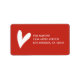 Dieses Adressetikett weist ein weißes Herz mit Ihrem Namen und Ihrer Adresse auf der rechten Seite auf. Die rote Hintergrundfarbe kann mit dem Anpassungstool geändert werden.