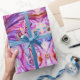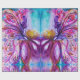 Lebhafte, farbenfrohe Fee der Blume, florale Wirbel und eine zauberhafte Schmetterlingsmaline, zeitgenössische Aquarellmalerei in lila, violetten, rosa, fuchsienfarbenen, blau-grün risierenden Farbtönen Gold und Silberfolie von Bulgan Lumini (c)