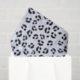 Ein leopardenes Druckdesign mit schwarzen Flecken auf einem weißen, eisigen Hintergrund.