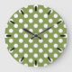 Weißpolka-Punkte auf Olivengrün Große Wanduhr