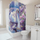 Weißschwan und Cygnet mit Lila Rose Duschvorhang