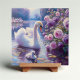 Weißschwan und Cygnet mit Lila Rose Fliese