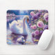 Weißschwan und Cygnet mit Lila Rose Mousepad