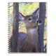 Niedliches Hirsch folgt mir im Wald. Hält für ein Foto zwischen 2 Bäumen.