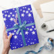 Weißsternmuster auf blauem Hintergrund Geschenkpapier