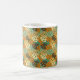 Diese Tasse hat ein modernes Design eines Plattenadapters, der sich in Bräunen, Gelb, Braun, Orange, Türkis, Blau und Grün überlagert.
