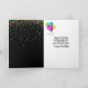 Glas Weißwein in Geschirr mit Geburtstagskaffetti und lustiges Zitat auf schwarzem Hintergrund. Zitat kann bearbeitet werden. Die Hintergrundfarbe kann geändert werden.