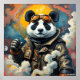 Eine fantastische Kreatur, die einem braunen Bären ähnelt, ist mit Steampunkaccessoires, darunter eine Brille und eine aufwändige Rüstung, geschmückt. Der lebendige dynamische Hintergrund schafft eine skurrile und abenteuerliche Atmosphäre.