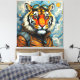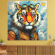 Eine fantastische Kreatur, die einem Tiger ähnelt, ist mit Steampunkaccessoires, darunter eine Brille und eine aufwändige Rüstung, geschmückt. Der lebendige dynamische Hintergrund schafft eine skurrile und abenteuerliche Atmosphäre.