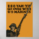 Dieses Vintage Poster aus dem 1. Weltkrieg zeigt einen Soldaten, der sich mit seinem Gewehr in den Kampf zieht. Es heißt: "E-E-YAH-YIP GEHT ÜBER MARINES". Feiern Sie die Marine- und Weltgeschichte mit diesem digital restaurierten Vintagen Kriegsposter aus dem The War Is Hell Store. Woll mehr Militär- und Geschichtsprodukte? Karo