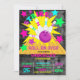 Roll weiter für eine Geburtstagsparty mit neonfarbenem Set auf schwarzem Texturhintergrund. Personalisieren Sie mit Ihren Party-Informationen und Sie sind bereit zu gehen.