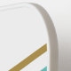Dieses schicke, sportliche Design zeichnet sich durch einen weißen Hintergrund mit breiten goldgelben und aqua-zentrierten horizontalen Rennstreifen und warmen braunen pinstripes aus.