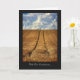 Dreamy Moments Serie Eine edle Kunst-Condolence-Karte mit einem atemberaubenden Blick über ein Weizenfeld bis zum Horizont und darüber hinaus. Eine Spur von Traktor-geflachtem Weizen führt vom Horizont zur Vorderseite der Szene, kurbelt herum und läuft geradeaus über den Horizont hinaus. Ein dramatischer Himmel wirft Schatten über das Feld und schlägt hellere Zeiten auf der anderen Seite des Horizonts vor. Eine düstere Grusskarte mit einer besonderen Touch der Landschaft. Bildcode: hrcol136