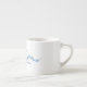 Blauer Text, der "liest, was" auf einer Kaffee-Tasse