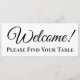 Diese Banner-Karte ist als Teil einer Sitzplakatanzeige konzipiert. Das schlichte Schwarz-Weiß-Design mit elegantem Schriftzeichen-Lesen Willkommen Finden Sie Ihren Tisch!