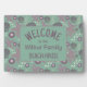Dieses kleine Küstenhotel Willkommen im Strandhaus Schild ist Aqua, Pflaume, Lila und Elfenbein mit einem Muster von Muscheln, Sand Dollar und Seestern. Die Familienname Monogram kann personalisiert werden, und die "Beachhouse"-Typografie kann so verlassen werden, wie sie ist, oder in "Küche", "Yacht" oder "Hütte" oder alles andere, was zutrifft, geändert werden. Sie können auch das Wort Willkommen ändern, wenn Sie möchten.
