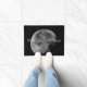 Schwarz-Weiß-Foto des Mondes in all seiner Herrlichkeit mit den Worten "Welcome Earthlings", um alle Ihre Freunde und Besucher auf Ihrer Zuhause zu begrüßen. Für den Liebhaber aller Dinge astronomisch. Kann innen oder außen verwendet werden. Foto von LD Gonzalez.