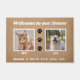 Herzlich willkommen bei dieser lustigen Tür! "Willkommen in unserem Haus." Personalisieren Sie mit Ihren Haustieren Fotos und Namen. Ideal, um Besucher auf Ihrer Zuhause willkommen zu heißen.
