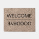 Hier ist ein cleveres Zuhause Begrüßungsmatte-Design, das Sie umdrehe, entweder Ihre Hausgäste auf dem Weg in Ihre Zuhause willkommen zu heißen oder sich auf dem Weg nach draußen ein Thema zu verabschieden. Enthält ein leicht gedrucktes abstraktes Design im Hintergrund, das die Matte dekoriert, ohne von Ihrer Nachricht abzulenken.