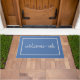 Es ist lustig, weil es wahr ist. Du bist willkommen. Diese humorvolle Türmatte ist für Introvertierte, sozial und sozial Unbehagliche, die Gäste mit ein wenig Zögern und vielleicht sogar etwas Angst empfangen. Einfache, elegante Schrift Typografie auf einem schieferblauen Hintergrund. Unerwartet, sonderbar und nur ein wenig sarkastisch.