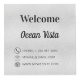 Für Hotelzimmer, Restauranttische, Mietobjekte. Personalisieren und hinzufügen Sie Ihr Firmenlogo und Platz für 4 QR Codes. Ein Imitat silber aussehender Hintergrund. Schwarzer Text.