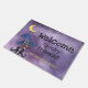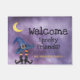 Dieses niedliche Halloween-Portier zeichnet sich durch eine Aquarellgrafik von Hexenbeinen und Hut aus. Der Text lautet: Welcome Spooky Friends! Personalisieren Sie die Tür mit Ihrem Namen.