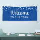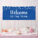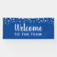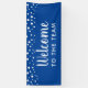 Welcome to the team banner with fully customizable text. Confetti circles and stars at the top. Change the blue background to another color if you like. Welcome new members or employees with a fun banner.