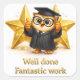 Well done, fantastic work graduation owl three gol quadratischer aufkleber