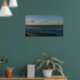 Wellen, die in der Sonnenuntergang-Landschaft abst Poster