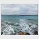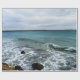 Die Wellen im Ozean, die in der Ferne mit den Freizeitfischern in die Küste rollen, sind abgebildet