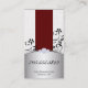 Werben Sie Ihren Wellness-Center und Salon mit diesem tiefen, roten, silbernen, schwarzen und weißen eleganten und klassischen Blumenwirl mit einer silbernen Plakette und Diamanten Visitenkarte. Die Visitenkarte ist mit einem zarten, grünen Hintergrund und einer schönen und eleganten silbernen Metallplatte mit Rand versehen. Die Plakette ist mit Diamanten auf der Oberseite und an den Seiten mit dekorativen Blumen und wirlen Akzenten von den Seiten geschmückt. Hinter der Dekoration befindet sich eine dicke, farbige Armbanduhr. Diese elegante und elegante Visitenkarte eignet sich auch hervorragend für Nageltechniker, Modedesigner, die Musikindustrie, Handtaschendesigner, die Unterhaltungsindustrie, Tänzer, Sänger, Schauspielerinnen, Makeup-Künstler, Kosmetologen, Modelle, Agenturen, Kleidergeschäfte, Restaurants, Tanzstudios und vieles mehr. ©2011 Pam's Designs.