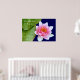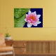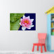 Wellness-Center & Retreat Poster individuell anpassen. Fügen Sie die Details Ihres Geschäfts in Minuten hinzu. Text lautet: Wir sind, was wir denken. All das, was wir sind, entsteht mit unseren Gedanken. Mit unseren Gedanken machen wir die Welt. Du kannst das ändern, wie du willst. Schönes Bild einer rosa Wasserlilie und Blätter auf dem Wasser. Ideal für alle Heilberufe.