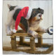Eine bezaubernde Welpenfigur auf einem Schlitten im Schnee.