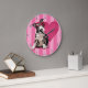 Niedlicher Boston-Terrierwelpe mit funky Sonnenbrillen und großen rosa dem Herzen, gemalt vom Künstler Maryline Cazenave.