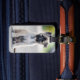 Welpe der deutschen Hirten auf dem Fußweg Gepäckanhänger