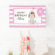 Feiern Sie den Geburtstag Ihres Kindes mit dieser niedlichen Hundebild mit einem Party Hut und Ballon. Personalisieren Sie dieses lustige Geburtstagsbanner, indem Sie den Namen und das Alter Ihres Kindes hinzufügen. Der Hut des Party und der Ballon sind in Rosa gehalten.